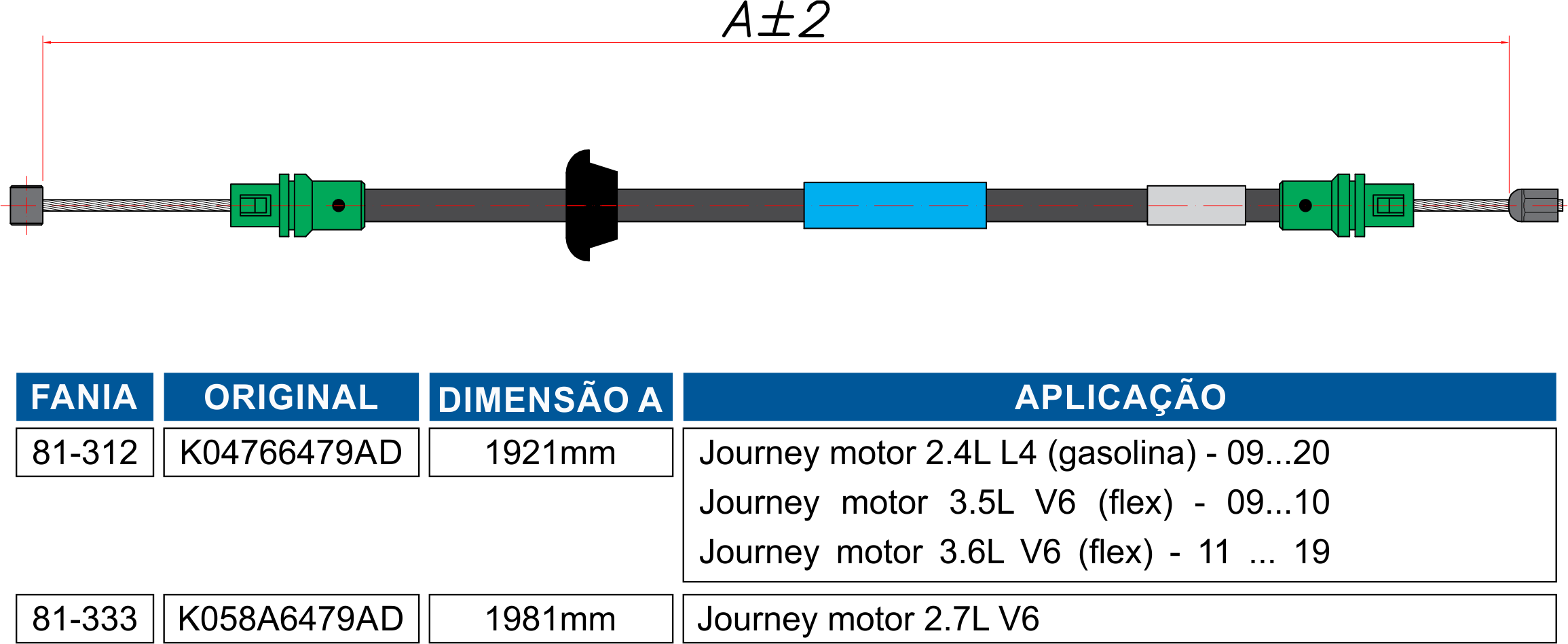 Os cabos de freio para linha Dodge aplicação no veículo Journey requer algumas particularidades para uma boa performance de funcionamento. Instale corretamente o cabo de acordo com seu modelo de veículo, conforme as dimensões abaixo: