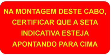 Atentar para a correta posição de montagem do cabo (conforme orientado acima), em caso de montagem INVERTIDA, a vida útil do cabo será comprometida e reduzida ao extremo.